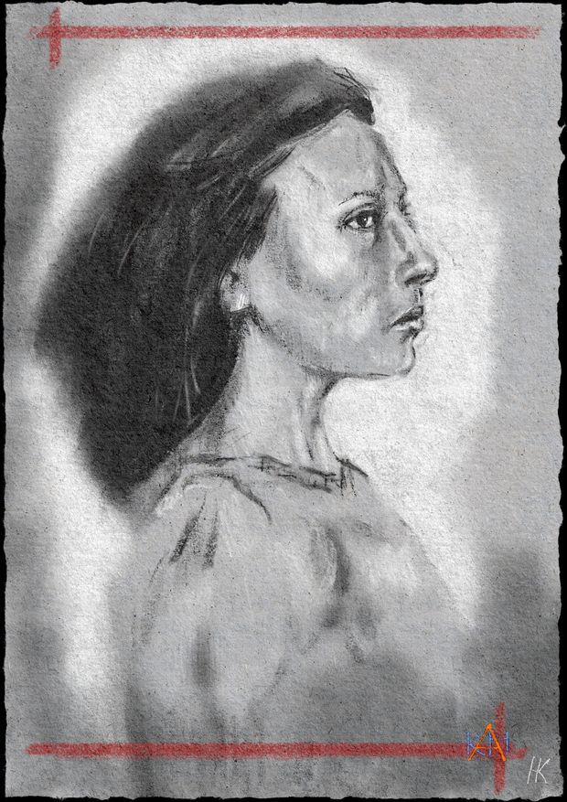 Alle im Folgenden gezeigten Porträtstudien sind digital erstellt. Einige wenige mit "Corel Painter 2022" die meisten mit "Rebelle 7", das auf diesem Gebiet Corel Painter überlegen ist. Ein wesentlicher Pluspunkt von "Rebelle 7" ist die Möglichkeit direkt auf die Leinwand zu malen und die Wechselwirkung von Farbe und Papier zu sehen. Es ist tatsächlich so, als arbeite man mit einem echten Pinsel oder Bleistift auf echtem Papier. Ich denke, dass man beim Ausdrucken eines solchen Gemäldes keinen Unterschied sieht zum Ausdruck eines Fotos eines klassisch (mit Pinsel und Papier) erstellten Bildes.