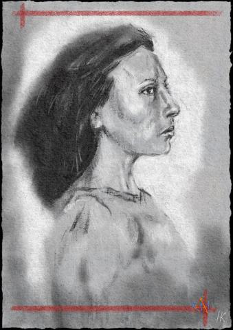 Die Porträtstudien erstelle ich nach geeigneten Fotovorlagen oder nach Gemälden. Als besonders interessante Quelle sehe ich Fotografien aus dem 19. Jahrhundert und solche von Stummfilmstars aus den Zwanziger- oder Dreißiger Jahren. In der Regel sind diese auf starke Hell-Dunkel-Kontraste beschränkt und wirken in gewisser Weise "überirdisch" oder "mysteriös", etwas leblos vielleicht, aufgrund einer gewissen Theatralik des Ausdrucks, die im Stummfilm (aufgrund des fehlenden Tons) nötig war. Dies lässt sich durch eine "wilde" oder dramatische Strichführung jedoch kompensieren. Man sollte halt nicht versuchen das Foto exakt zu kopieren, vielmehr muss man es interpretieren, durch seinen persönlichen Filter laufen lassen.