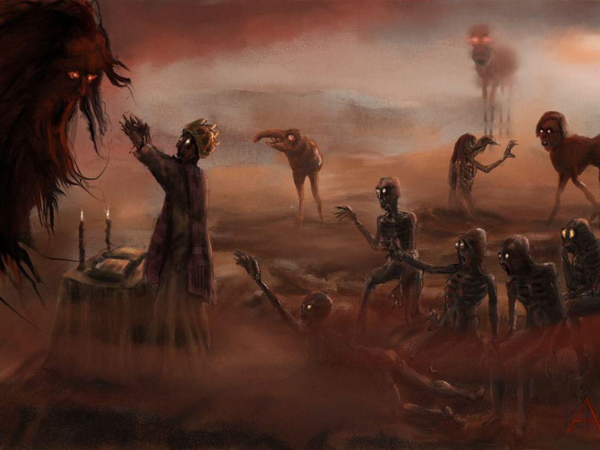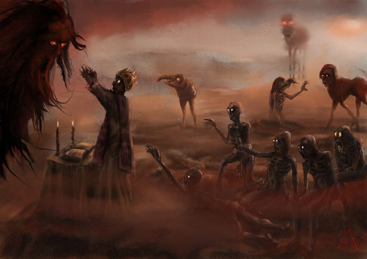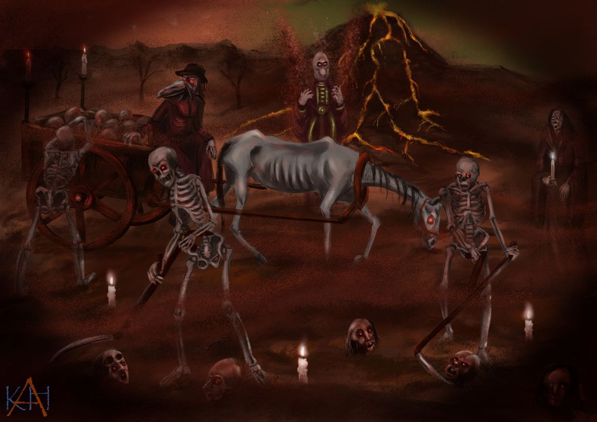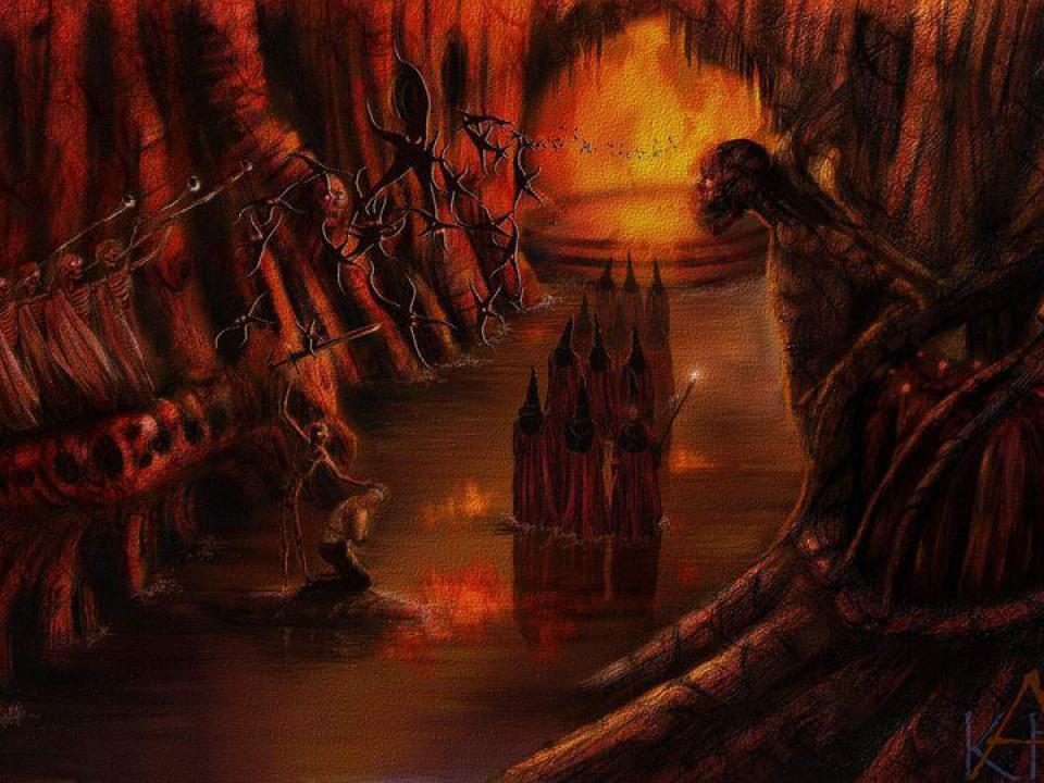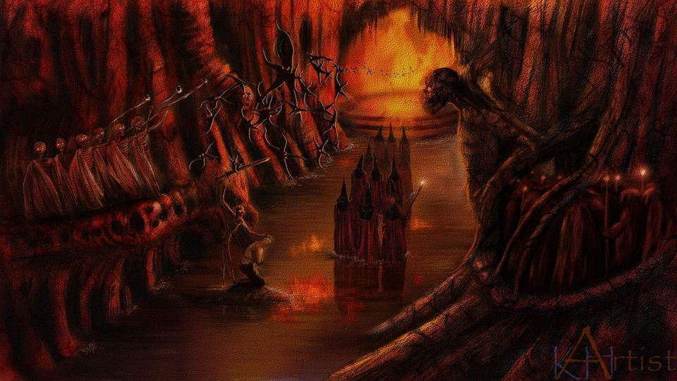 Man sieht ja immer eher dunkle Landschaften, absurd verzerrte Formen, Glut und Feuer, sowie kleine Teufel, welche die armen Seelen mit Dreizacken piesacken.