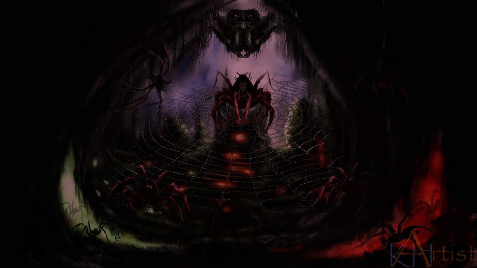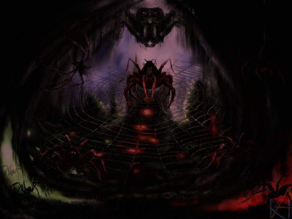 Einmal geht es um Ängste, wie die Angst vor Spinnen, um dunkle gluterhellte Höhlen, um seltsame Kreaturen oder so etwas wie einen Satan oder Höllenfürst als Personifikation dunkler Seelenmächte. Im Grunde geht es also um Visualisierungen von dunklen Seeleninhalten, die doch allzu gerne verdrängt werden. Seelisch gesünder scheint mir, sich diese bewusst zu machen, sie anzuschauen aus der Distanz, dann verlieren sie jeglichen Schrecken - "Tod, wo ist dein Stachel? Hölle, wo ist dein Sieg?"