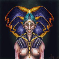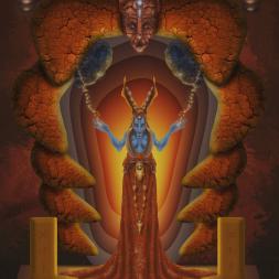 Ich habe dieses Thema hier auf hypothetische Welten transformiert, was mir mehr gestalterische Freiheit gibt, da ich mich nicht an bekannten kulturellen Gegebenheiten der irdischen Geschichte orientieren muss, die mir auch in ihrer Formensprache und ihren kultischen Inhalten nur rudimentär bekannt sind.