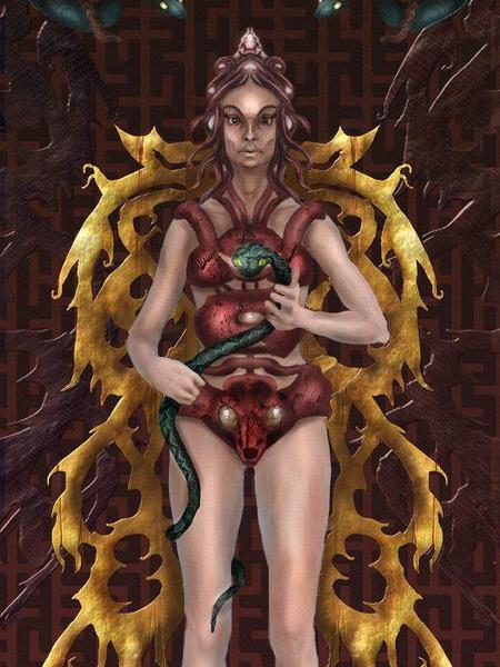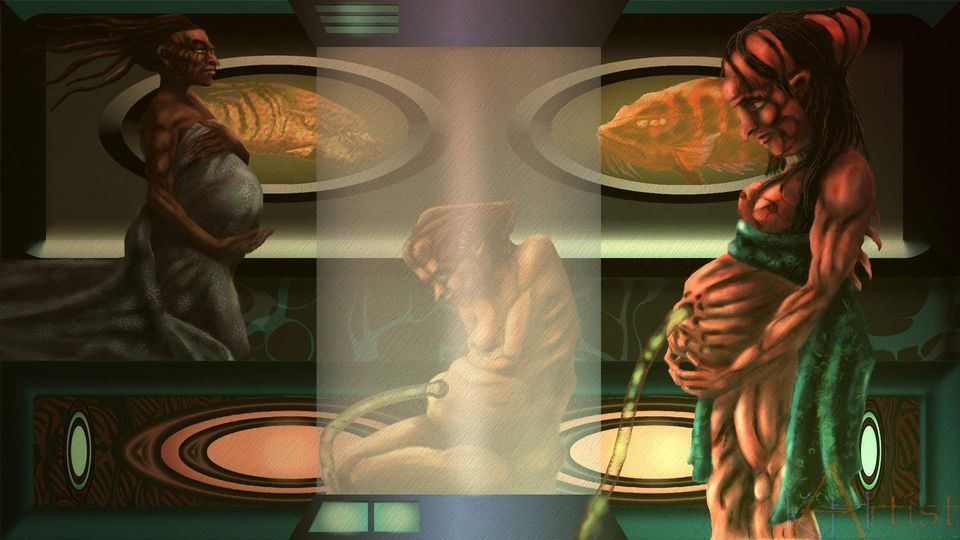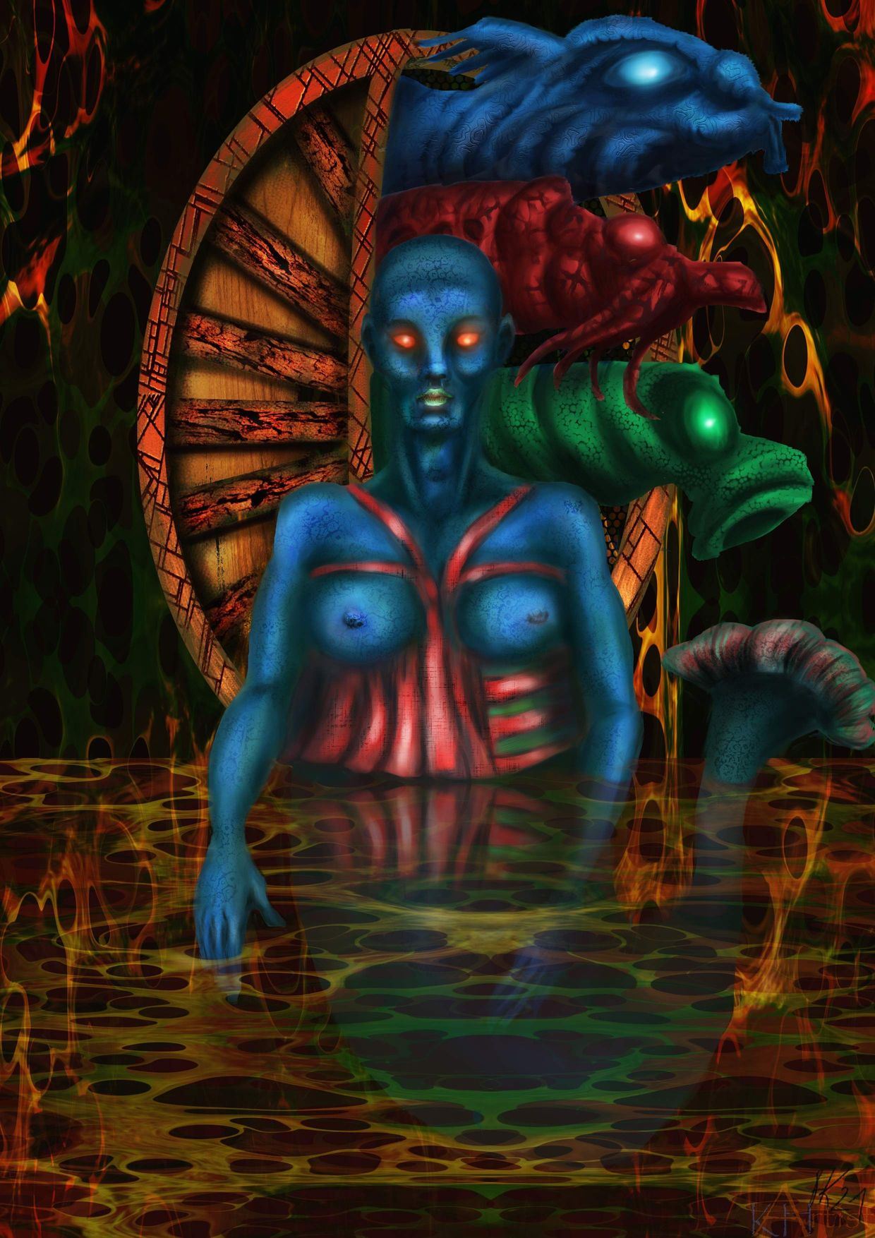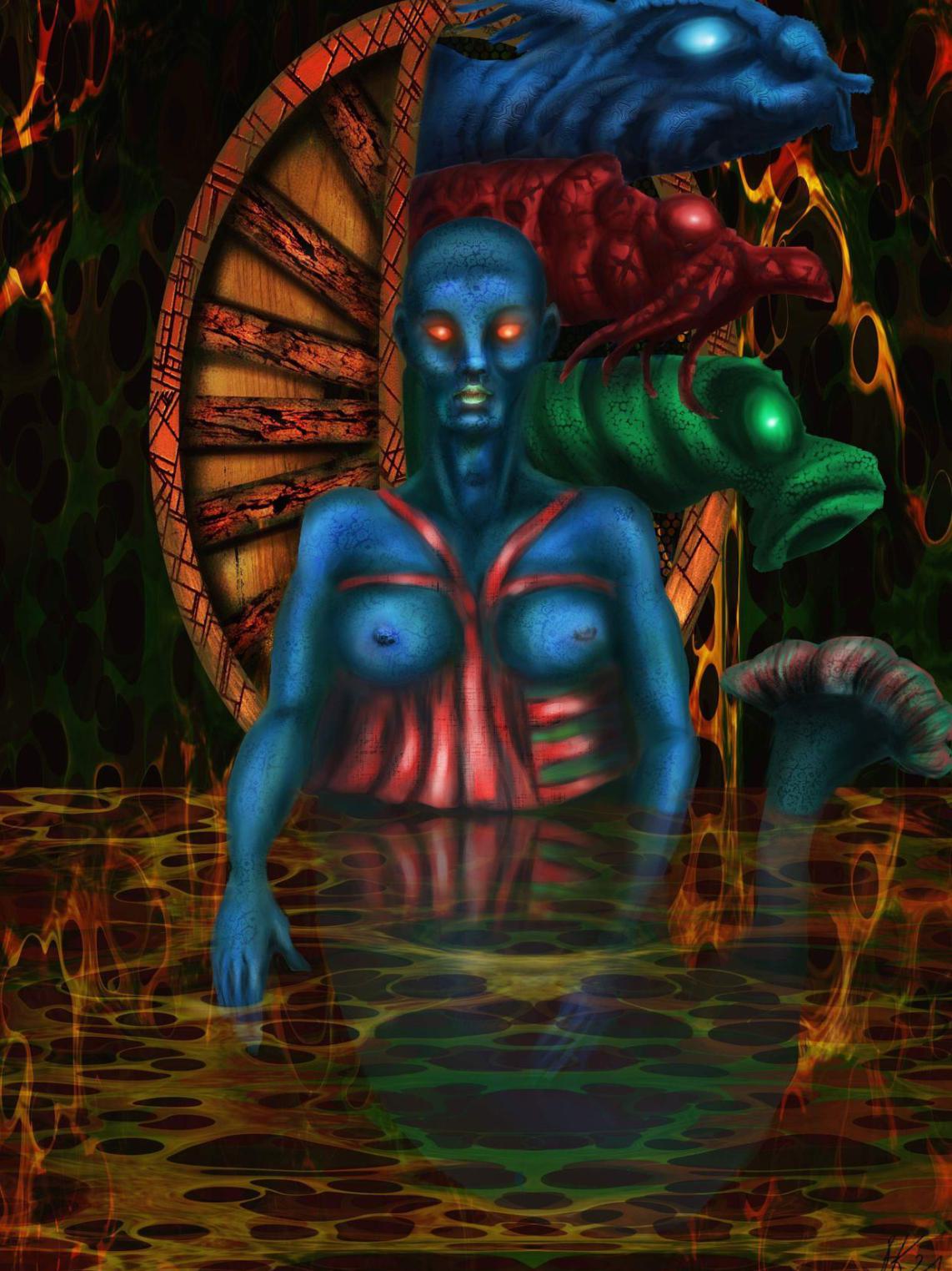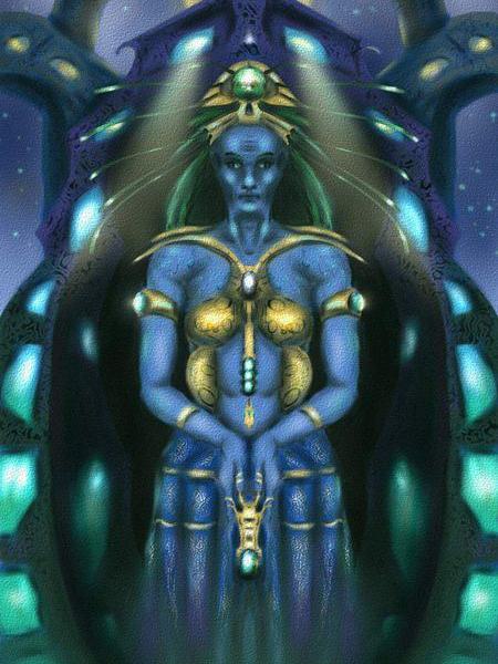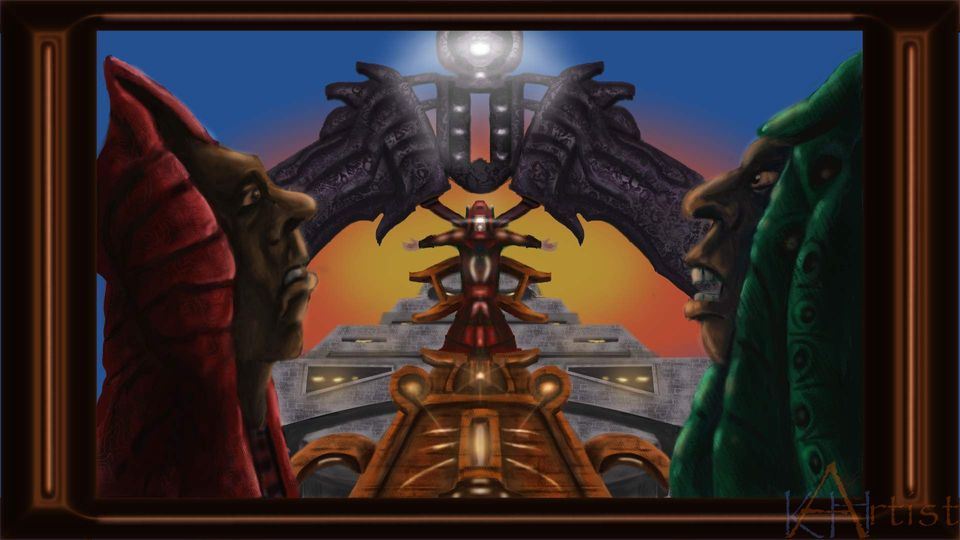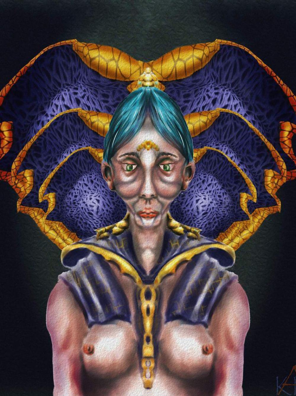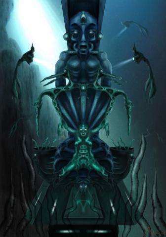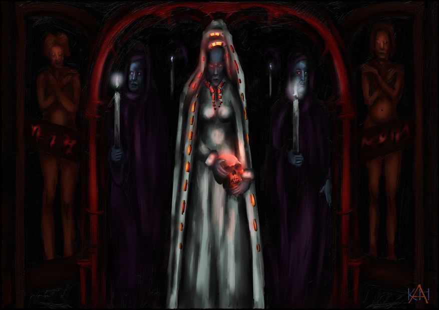 Ich habe dieses Thema hier auf hypothetische Welten transformiert, was mir mehr gestalterische Freiheit gibt, da ich mich nicht an bekannten kulturellen Gegebenheiten der irdischen Geschichte orientieren muss, die mir auch in ihrer Formensprache und ihren kultischen Inhalten nur rudimentär bekannt sind.