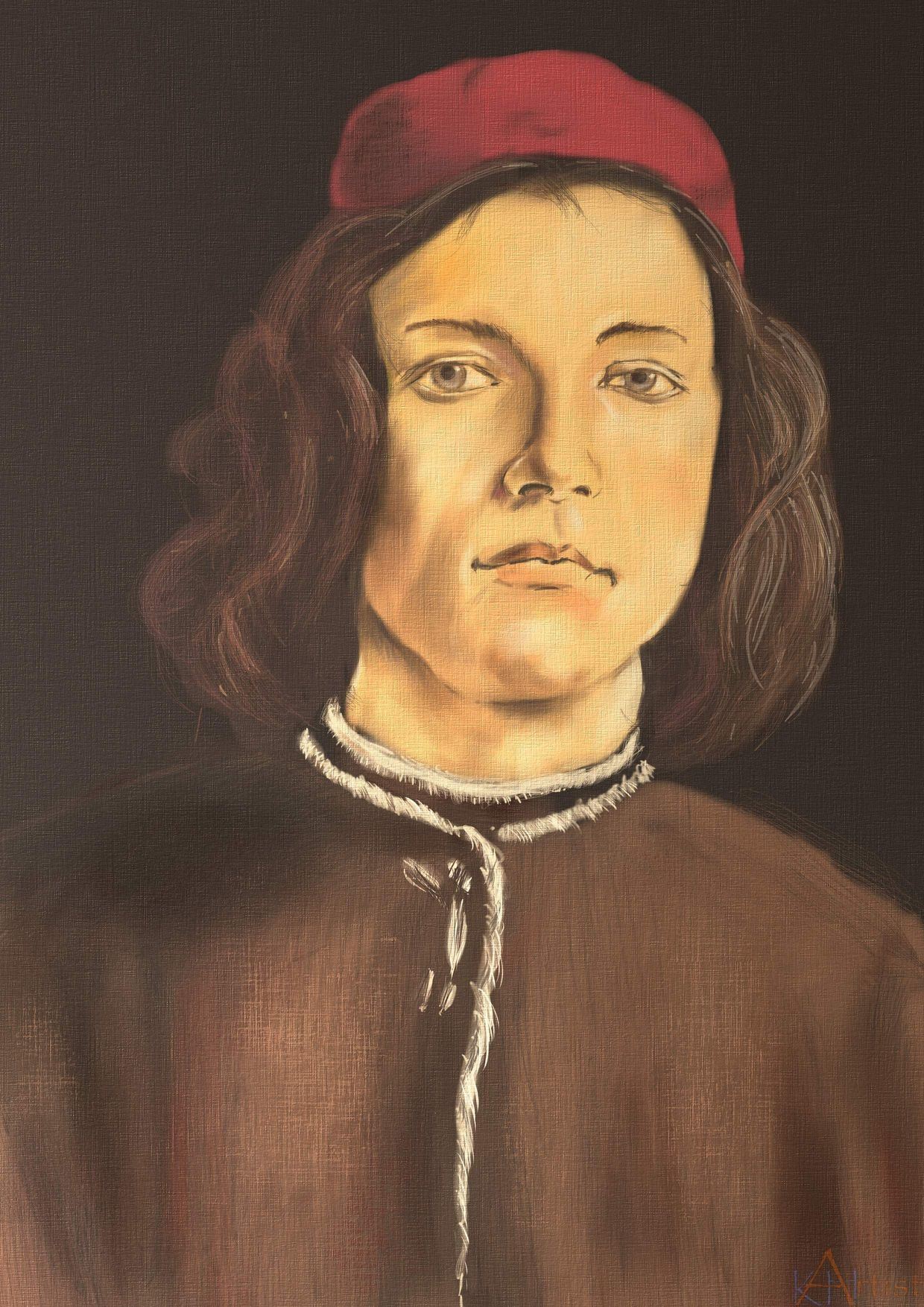 Alle im Folgenden gezeigten Porträtstudien sind digital erstellt. Einige wenige mit "Corel Painter 2022" die meisten mit "Rebelle 7", das auf diesem Gebiet Corel Painter überlegen ist. Ein wesentlicher Pluspunkt von "Rebelle 7" ist die Möglichkeit direkt auf die Leinwand zu malen und die Wechselwirkung von Farbe und Papier zu sehen. Es ist tatsächlich so, als arbeite man mit einem echten Pinsel oder Bleistift auf echtem Papier. Ich denke, dass man beim Ausdrucken eines solchen Gemäldes keinen Unterschied sieht zum Ausdruck eines Fotos eines klassisch (mit Pinsel und Papier) erstellten Bildes.